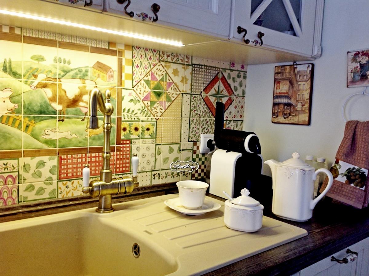 Рисунок никогда не сотрётся и ухаживать за расписанной плиткой не сложнее ,