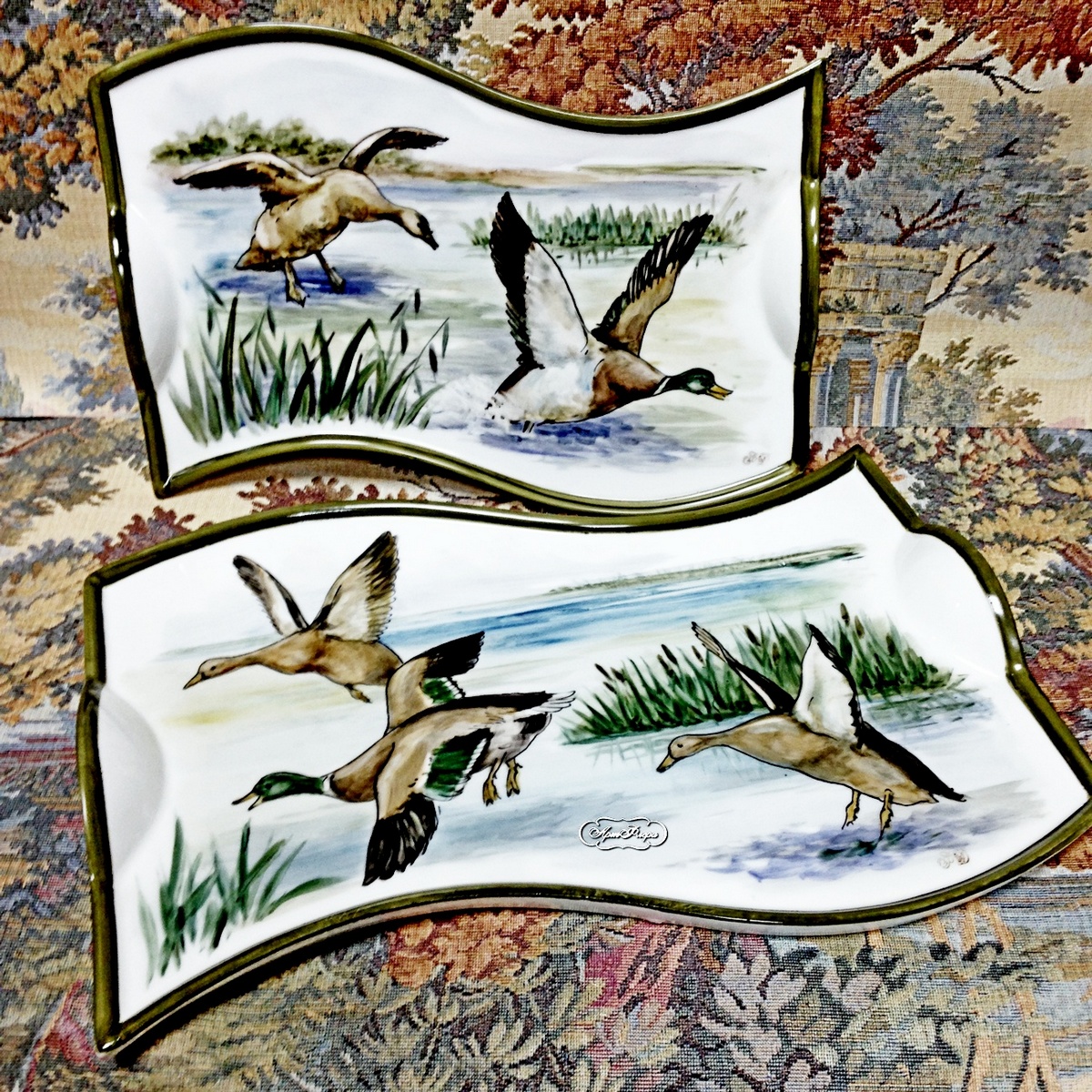 Поднос фарфоровый "Утки на болоте", 26 х15 см, 31х18 см