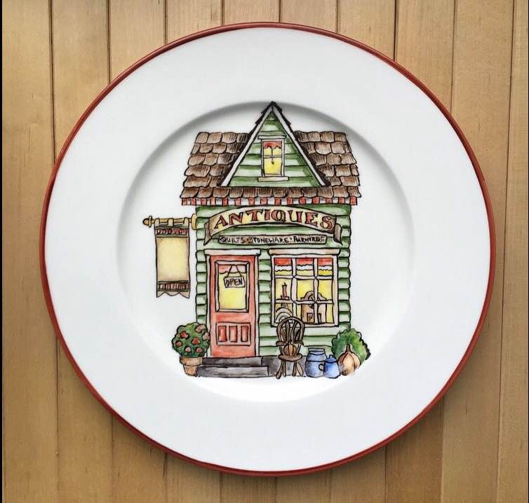 Тарелка "Антикварная лавка" , 22 см , готовая работа - 2000 рублей