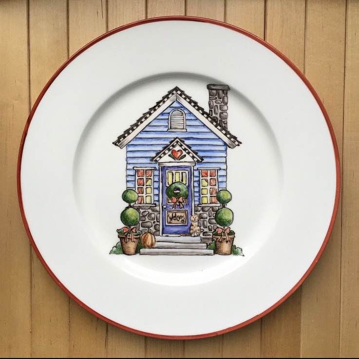 Тарелка "Домик" , 22 см , готовая работа - 2000 рублей