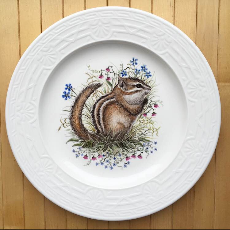 Тарелка " Бурундук" , 27  см , готовая работа  - 4000 рублей
