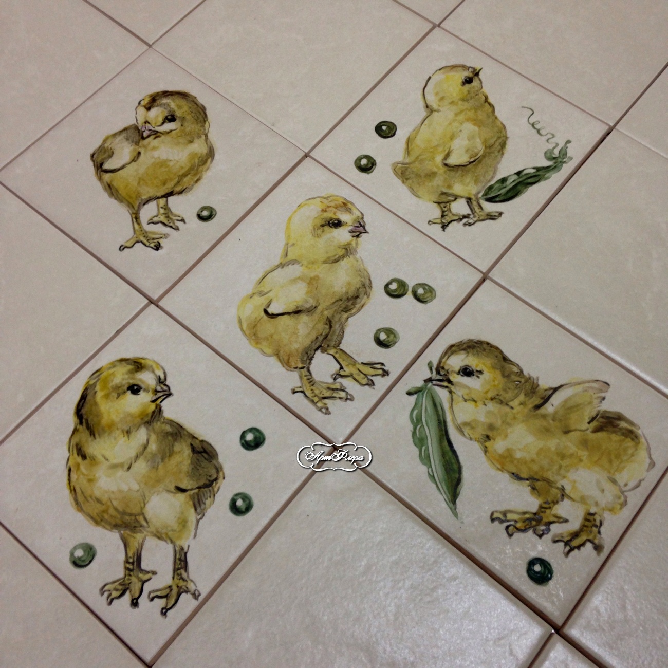 Фартук для кухни "петушки и курочки" . Фрагмент .