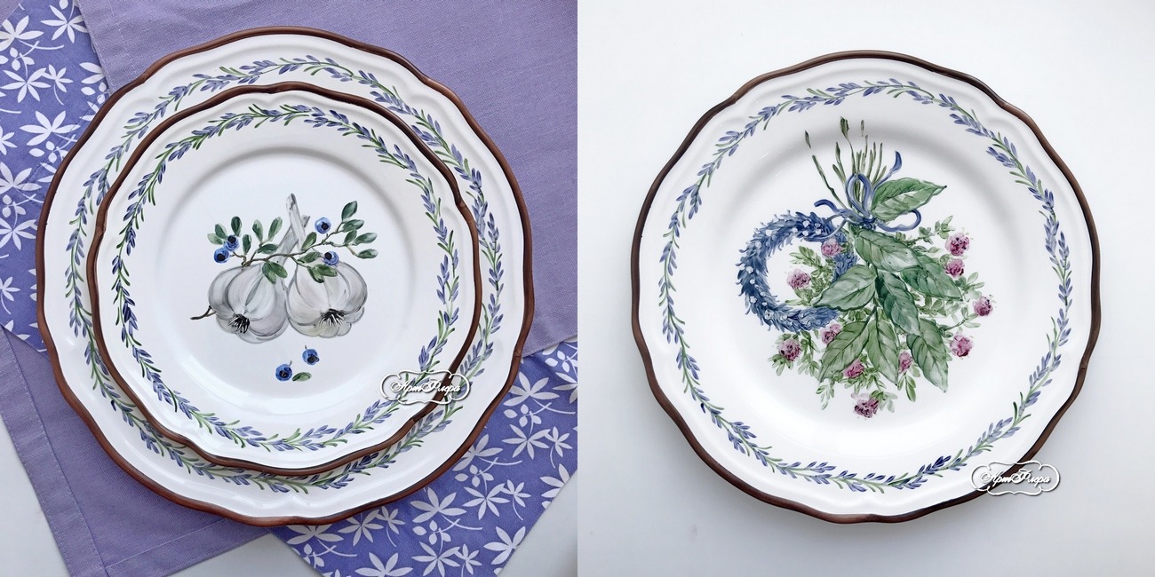 Столовые тарелки на 6 персон Травки 28 см , 22 см
