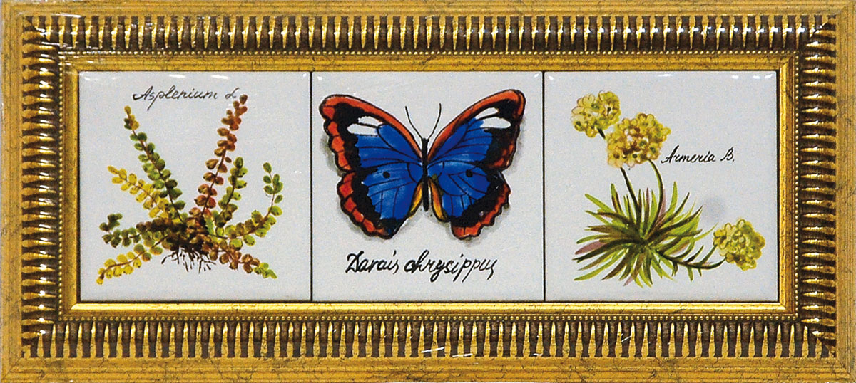 Триптих - бабочки. Роспись на керамической плитке, горячий обжг. Автор и исполнитель - Флера Даминова.