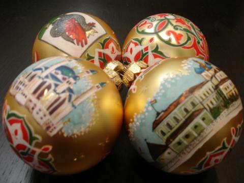 В росписи игрушек я использовала татарстанскую символику и узнаваемые виды города Казани.