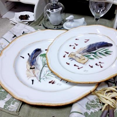 На каждой тарелочке я написала имя приглашенного гостя. Получается тарелочка-визитка!