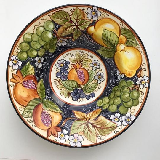 Глубокое блюдо для сервировки стола. Сочные краски средиземноморских плодов и побегов особенно хорошо смотрятся с "живыми" свежими фруктами.