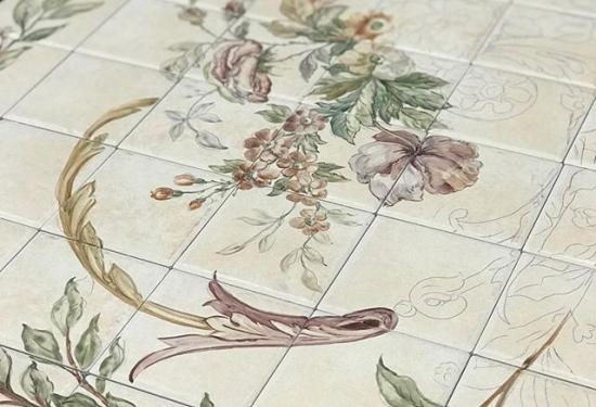 Надглазурная роспись керамический плитки. Многократные обжиги в муфельной печи при 800 с. Уход за плиткой самый обычный - мыть, чистить без сомнений! Рисунок никогда не сотрется, гарантирую.