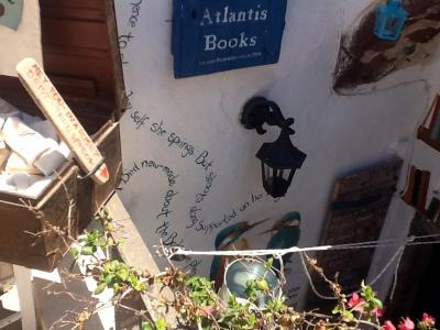Ступеньки вниз, в книжную лавку. Обратите внимание на роспись стены...