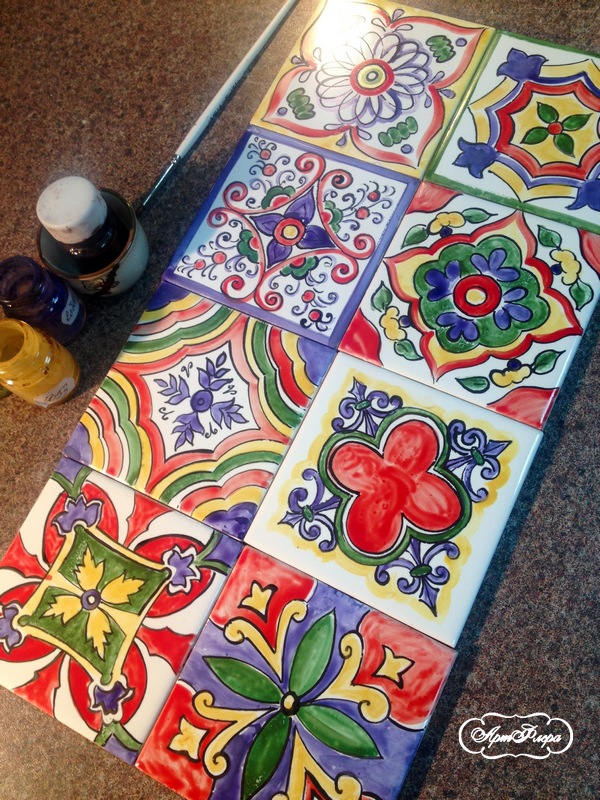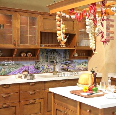 Эти фартуки из керамической плитки я расписывала для кухни в стиле кантри и прованс.