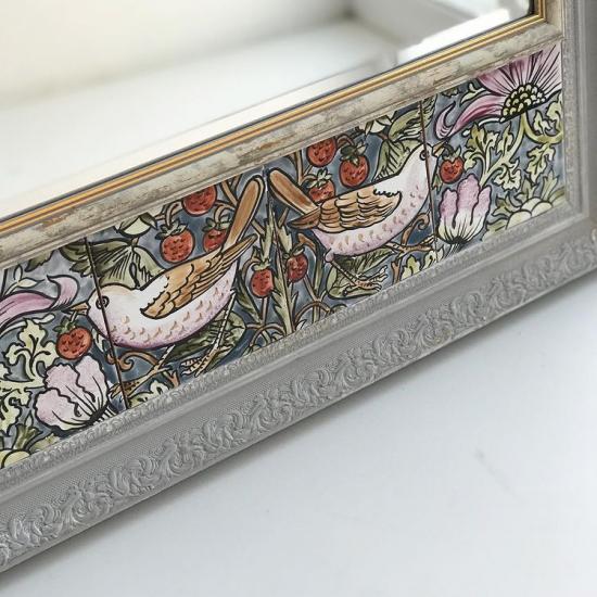 Зеркало декорировано расписанной керамической плиткой по мотивам орнамента Уильяма Морриса, легендарного художника и дизайнера конца 19 века.