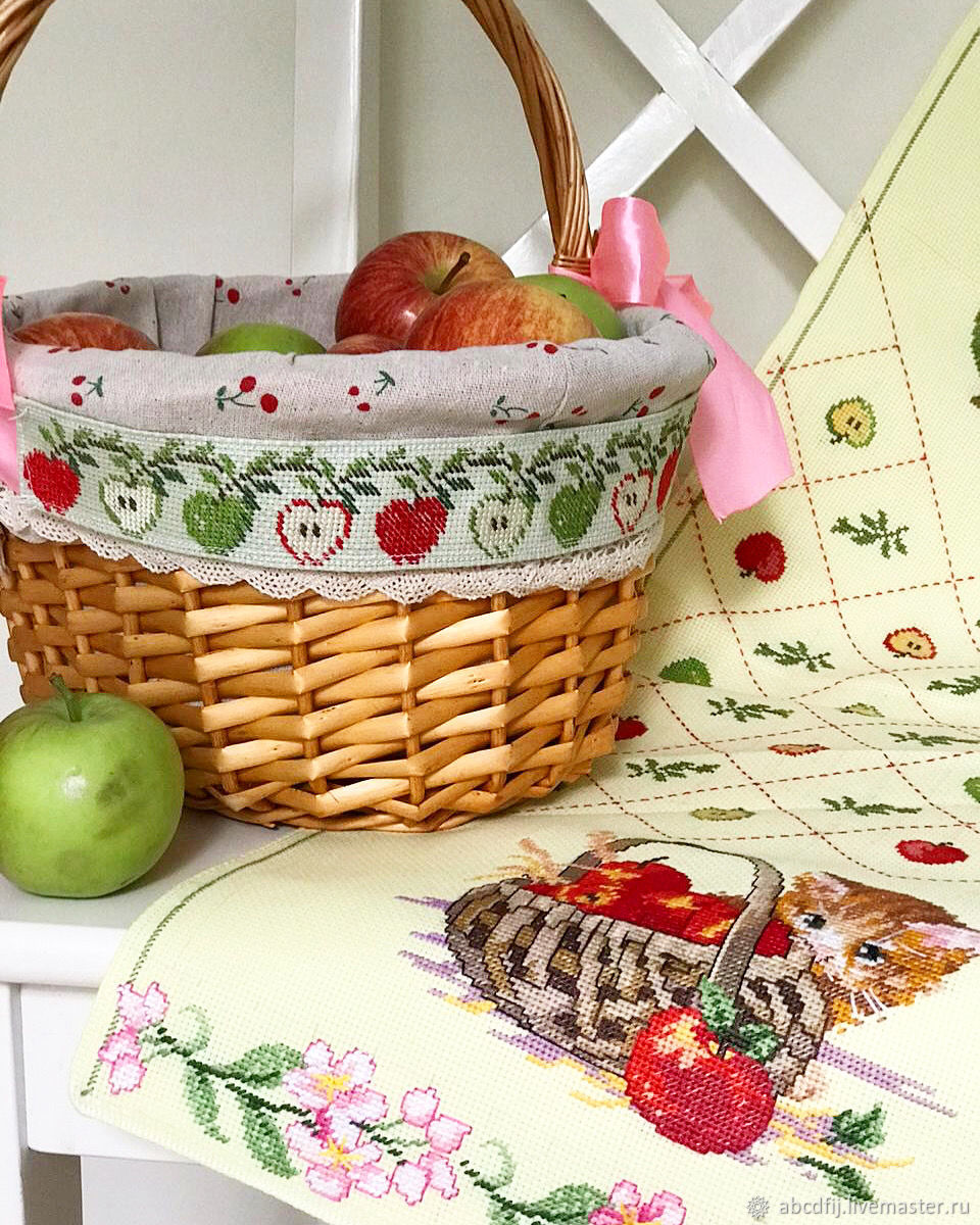 Кроме наборов с корзинкой, еще есть декоративные подушки, просто салфетки и даже вышитые картины. Доставка из Москвы в любой город транспортной компанией или почтой.