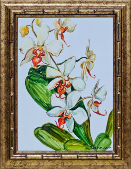 Перебирала фотографии с отдыха в Таиланде, вспомнила как побывала на выставке орхидей в Паттайе в 2010 году. От красоты увиденных цветов, размером с чайное блюдце, множества разнообразных сортов, ароматов — восторгу и вдохновению не было конца! В итоге, в 2012 году создана серия работ — «Орхидеи» (роспись на керамической плитке, обжиг).